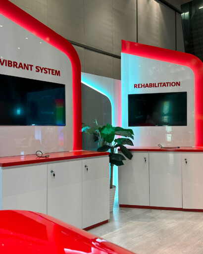 قمنا بتنفيذ بوث Medel بتصميم عصري وأنيق باللون الأحمر، يعكس هوية العلامة التجارية ويجذب الزوار بطريقة ملفتة. ركزنا على التفاصيل البصرية لتوفير تجربة تفاعلية ومميزة داخل الفعالية.