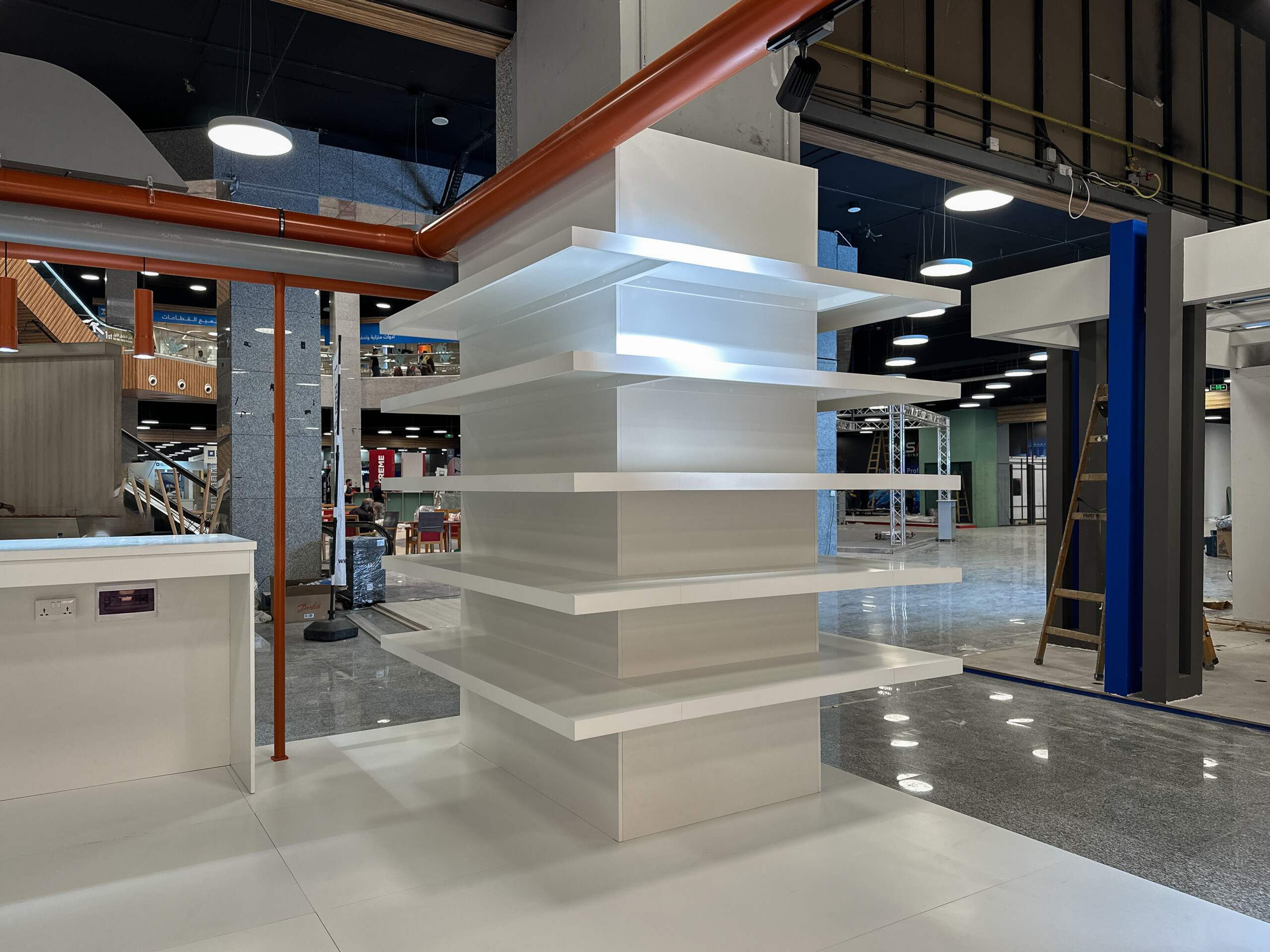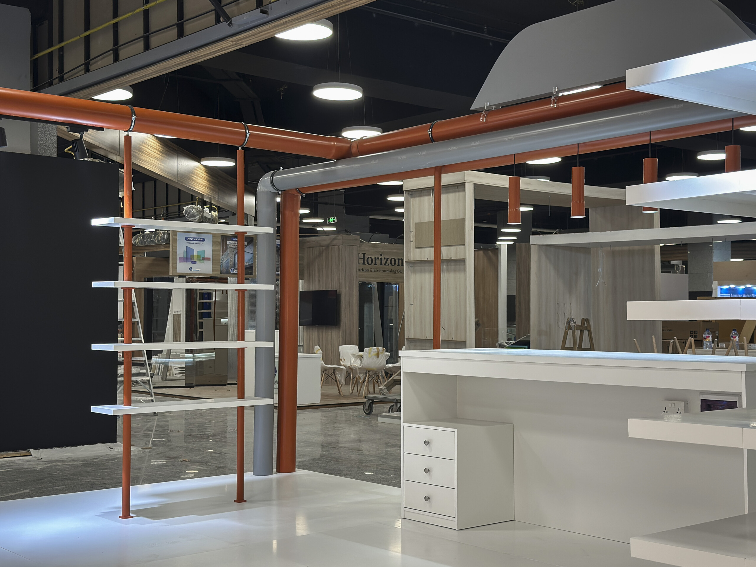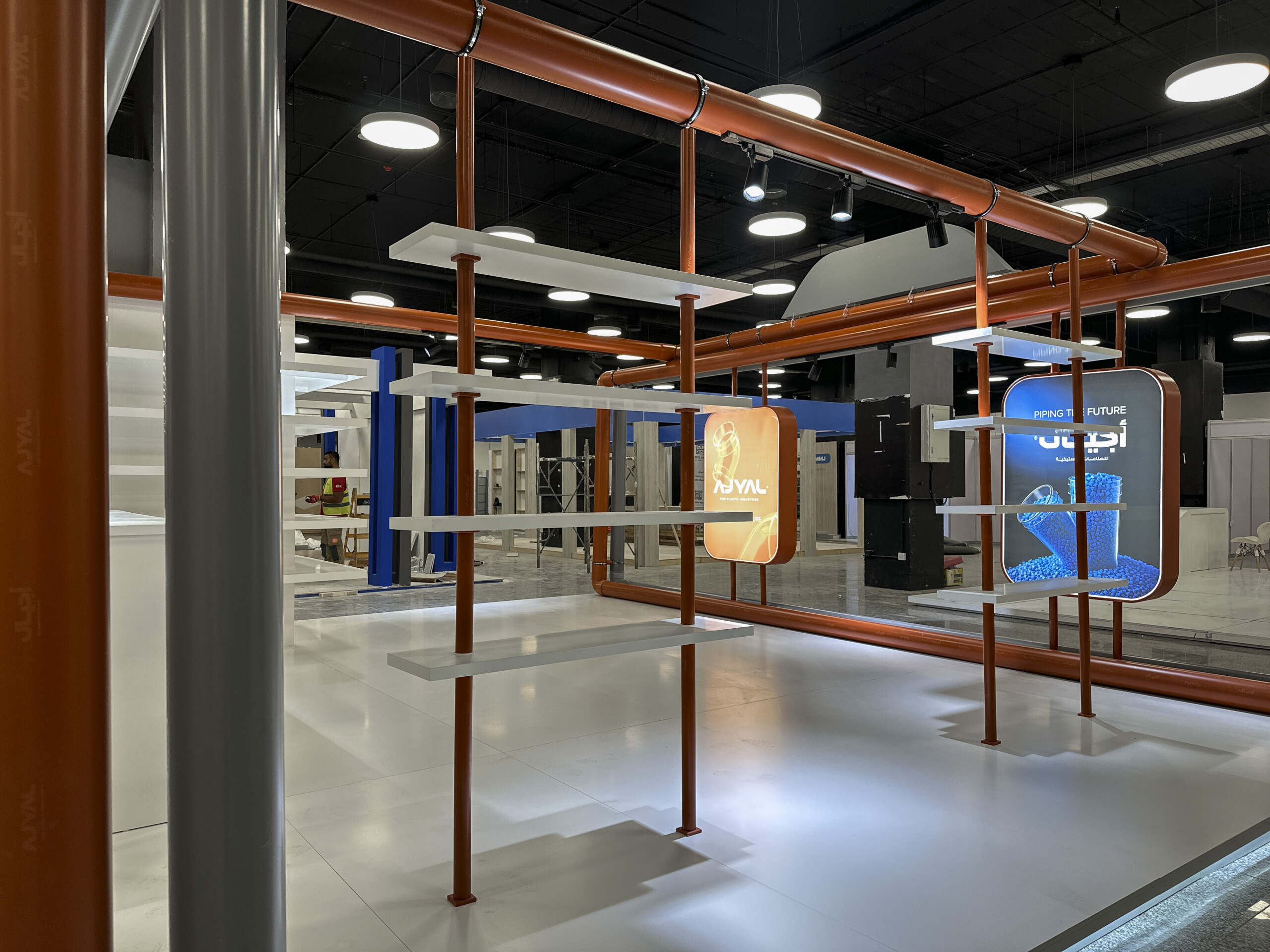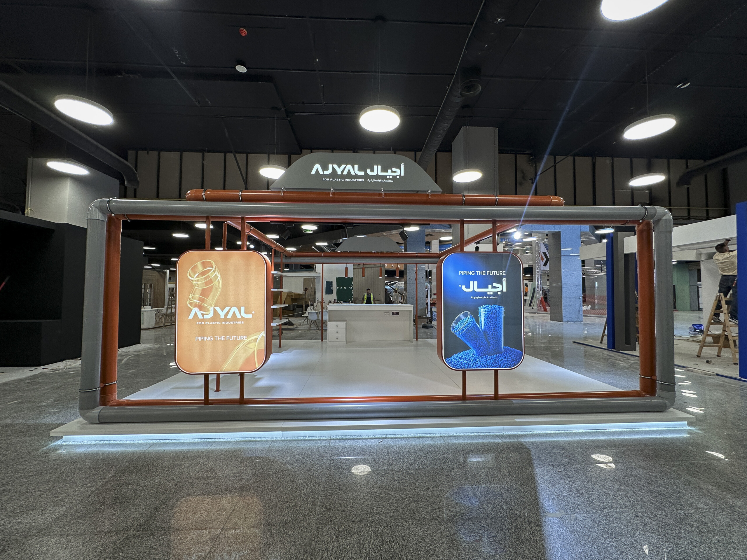 We executed the Ajyal booth with an innovative and unique design, using pipes solely for the booth structure and a wooden floor to create a modern and elegant look. The simple yet creative design highlighted the brand identity and provided visitors with a distinctive and engaging experience.