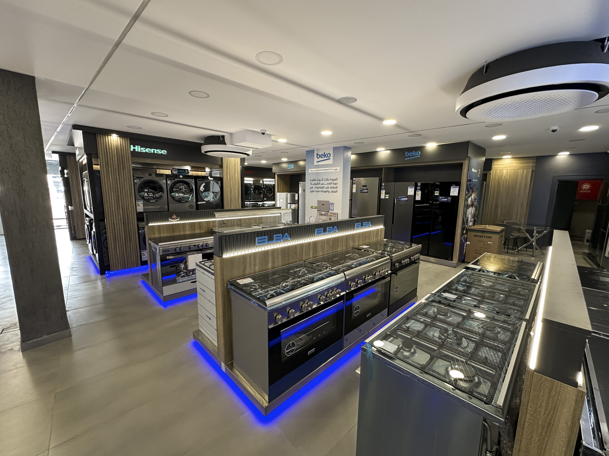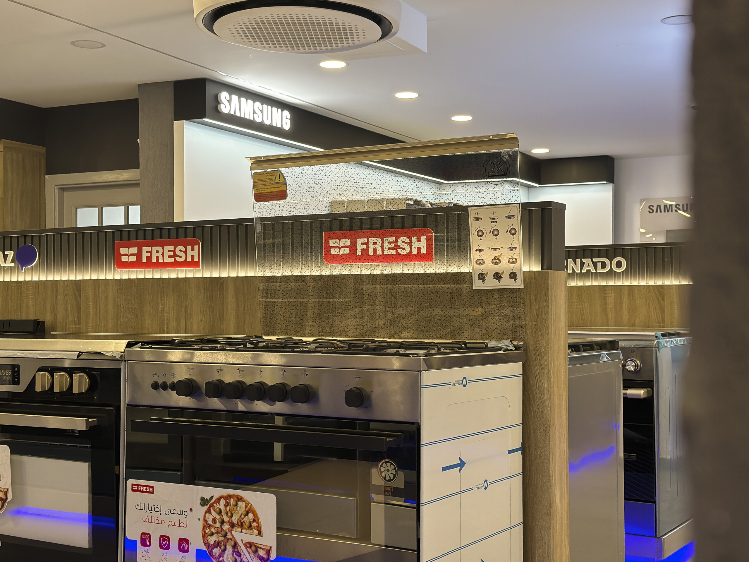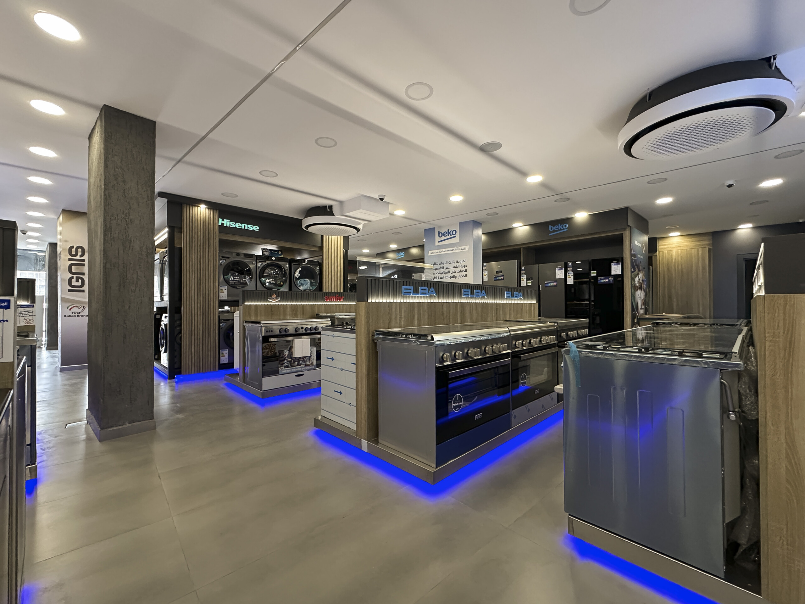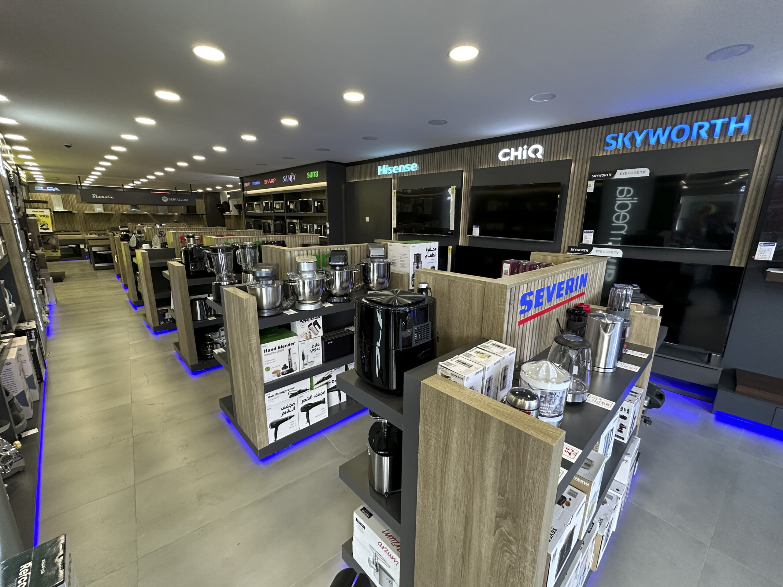 We executed the decor of Dahab Footwear Showroom – Abdali Mall Branch with a distinctive and more luxurious design compared to other locations, reflecting the brand’s identity at a level that suits its prestigious setting. The finishes feature natural oak veneer wood, bringing warmth and elegance to the space, combined with natural stone-topped tables for a refined and contemporary look. The design also incorporates clear glass elements to enhance openness and visibility, along with Corian surfaces that add a smooth, modern, and functional touch to the final details.