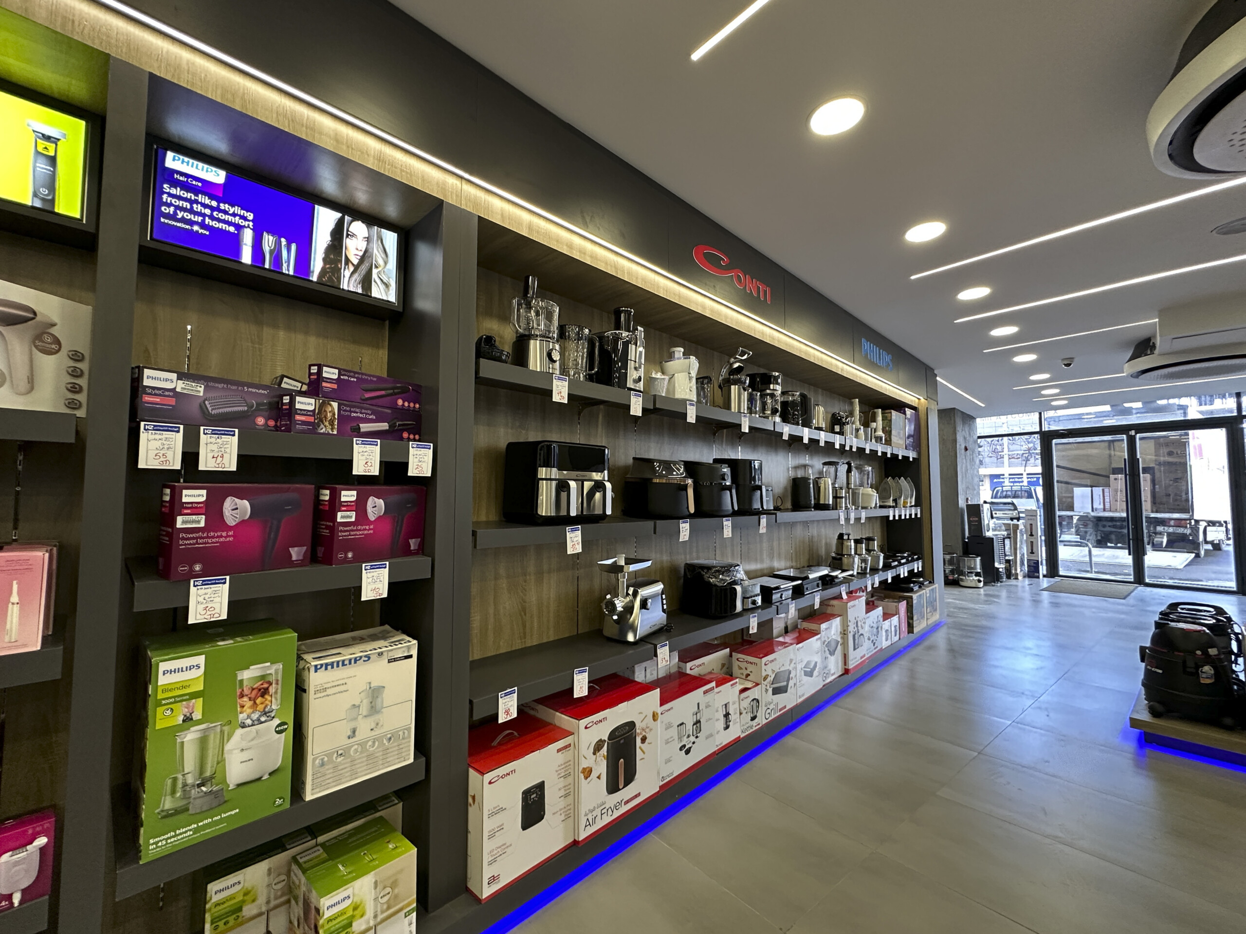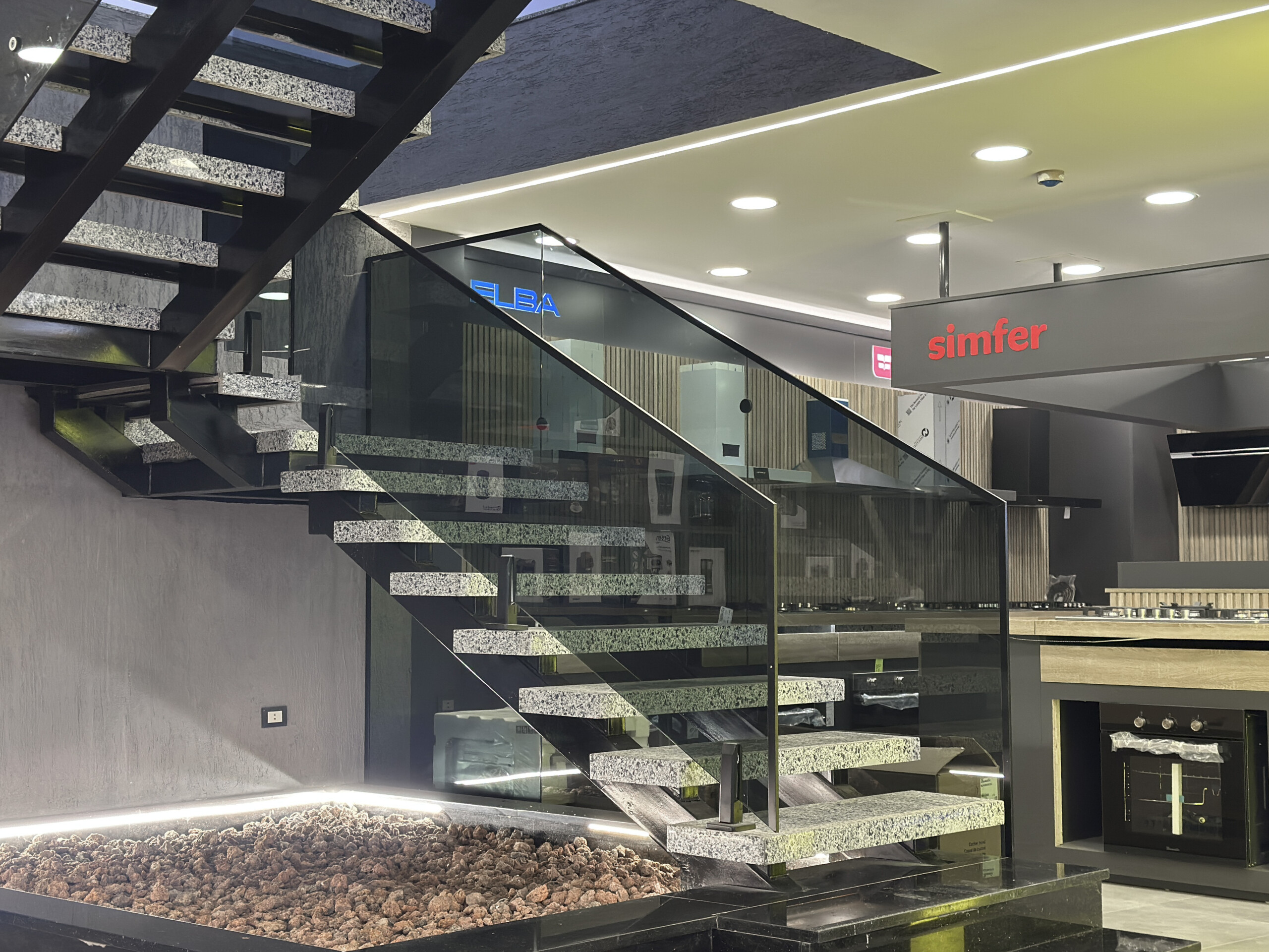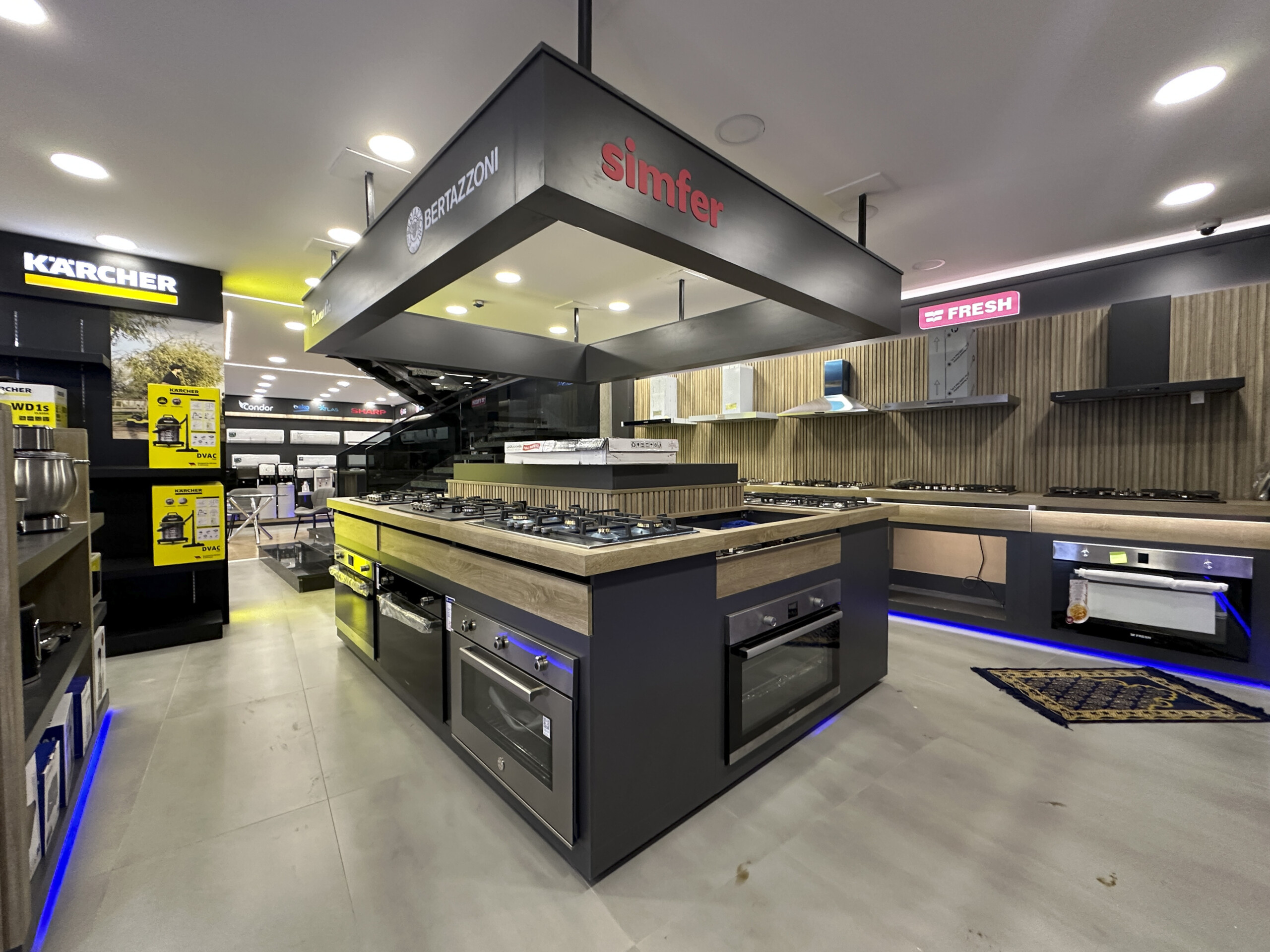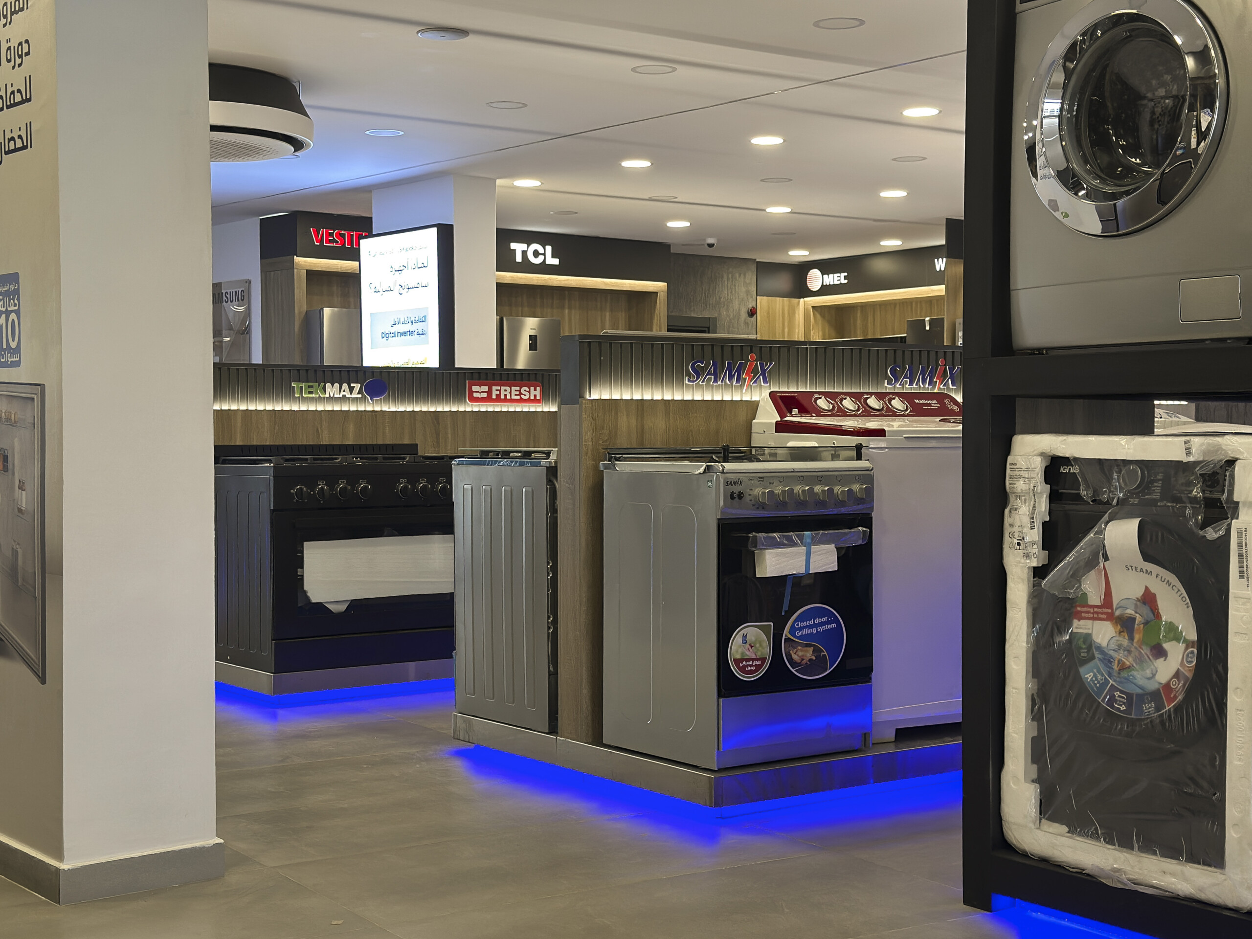 We executed the decor of Dahab Footwear Showroom – Abdali Mall Branch with a distinctive and more luxurious design compared to other locations, reflecting the brand’s identity at a level that suits its prestigious setting. The finishes feature natural oak veneer wood, bringing warmth and elegance to the space, combined with natural stone-topped tables for a refined and contemporary look. The design also incorporates clear glass elements to enhance openness and visibility, along with Corian surfaces that add a smooth, modern, and functional touch to the final details.