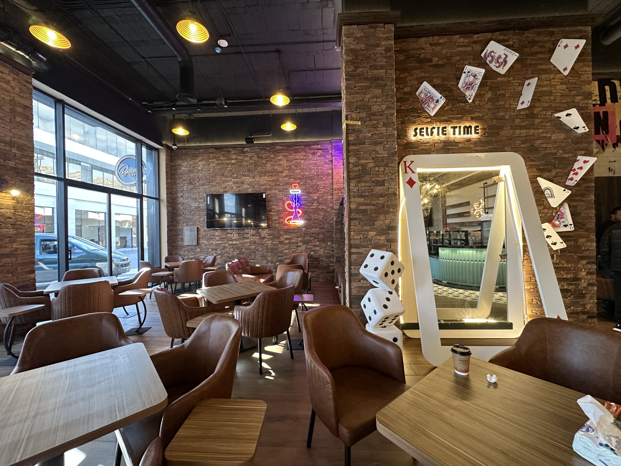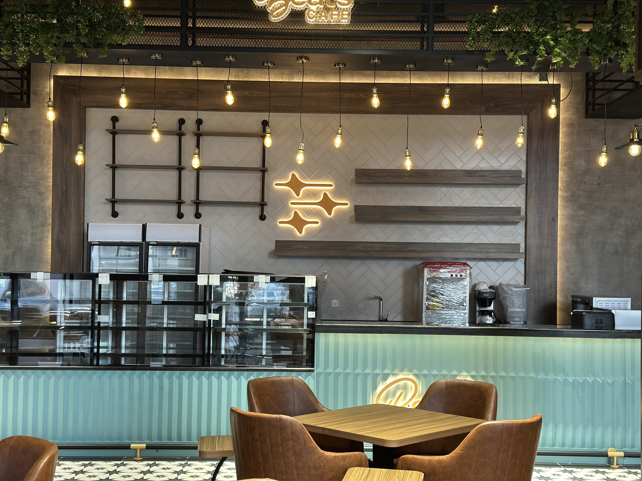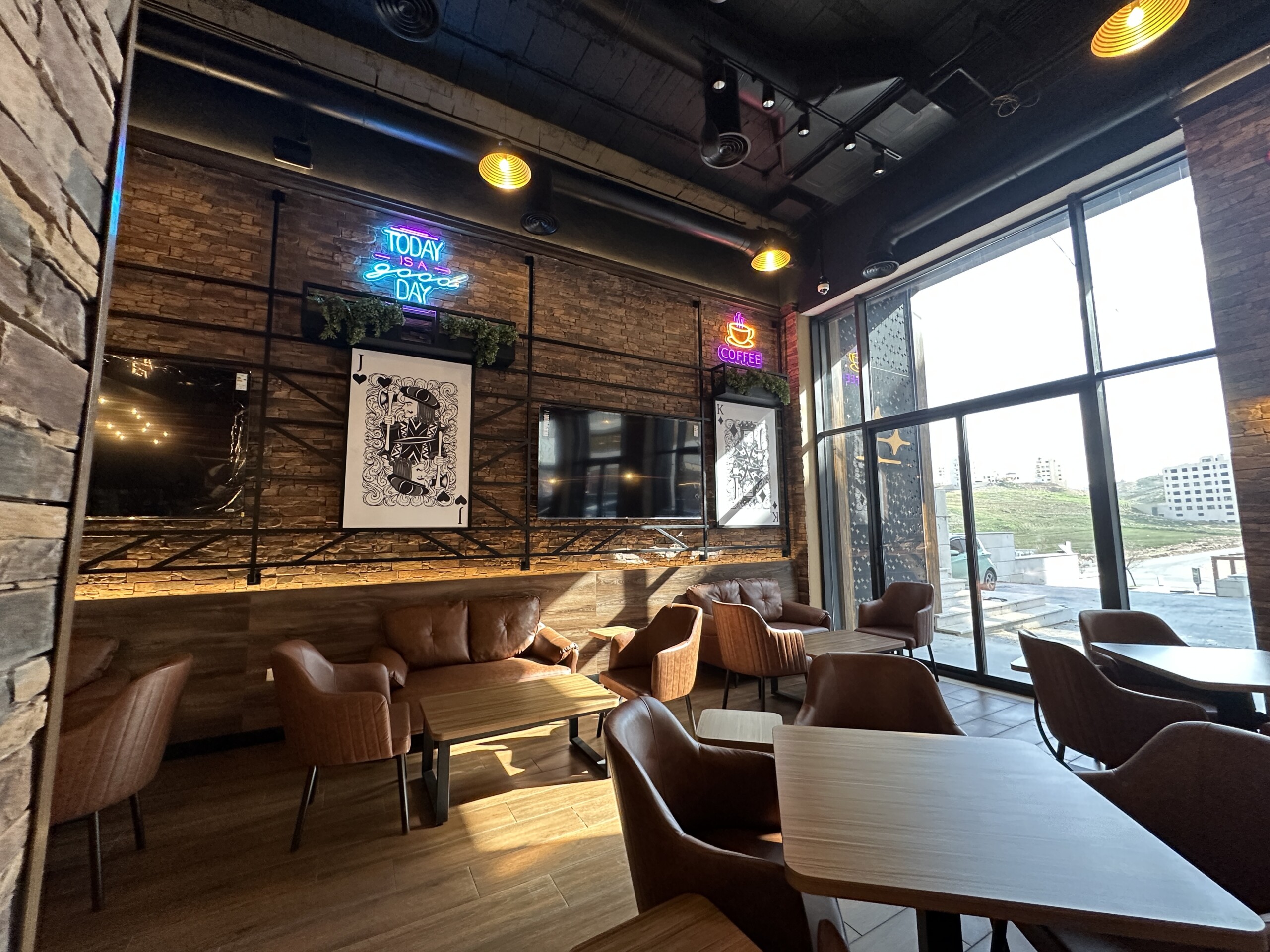 We executed the decor of Dahab Footwear Showroom – Abdali Mall Branch with a distinctive and more luxurious design compared to other locations, reflecting the brand’s identity at a level that suits its prestigious setting. The finishes feature natural oak veneer wood, bringing warmth and elegance to the space, combined with natural stone-topped tables for a refined and contemporary look. The design also incorporates clear glass elements to enhance openness and visibility, along with Corian surfaces that add a smooth, modern, and functional touch to the final details.