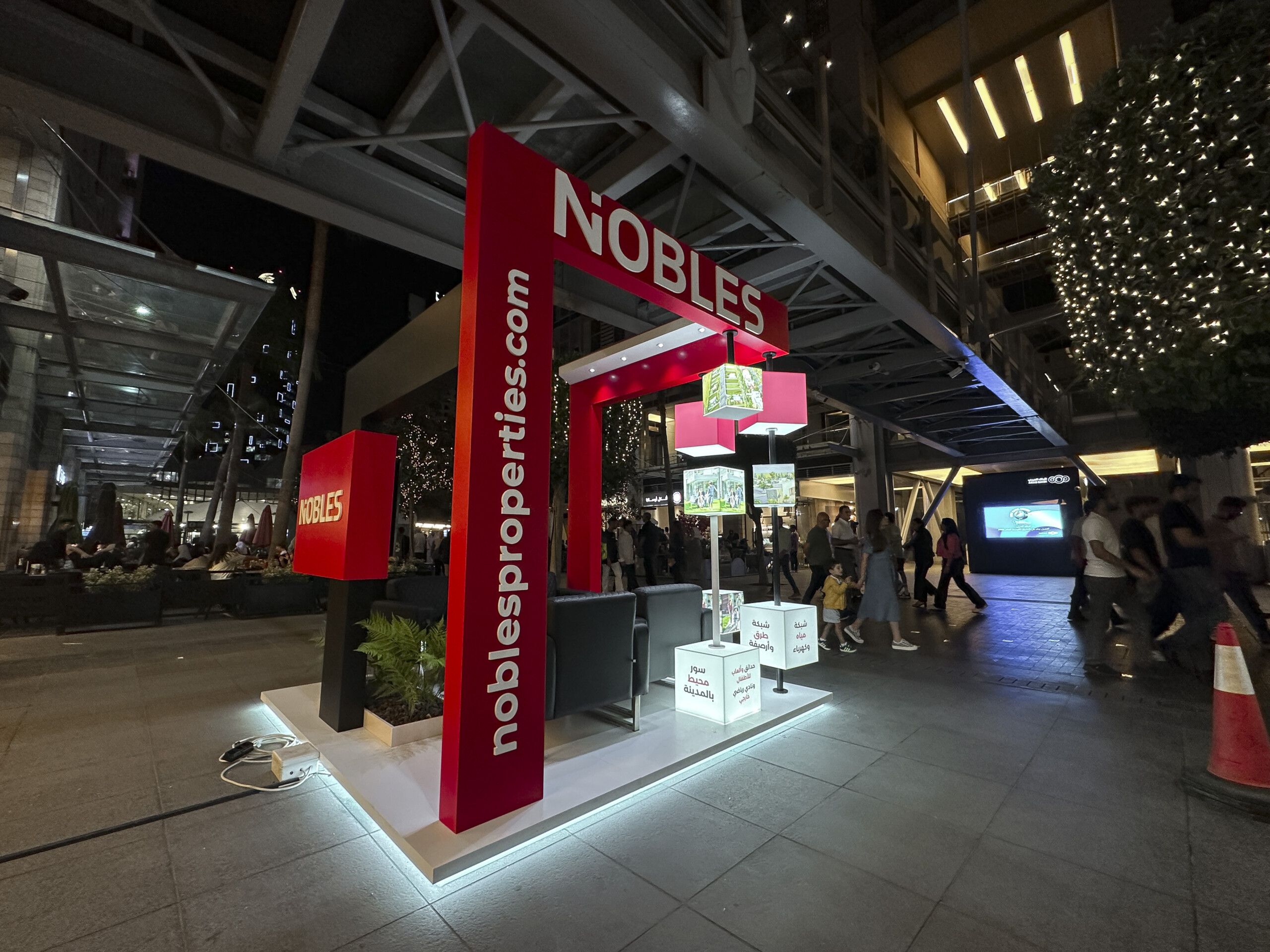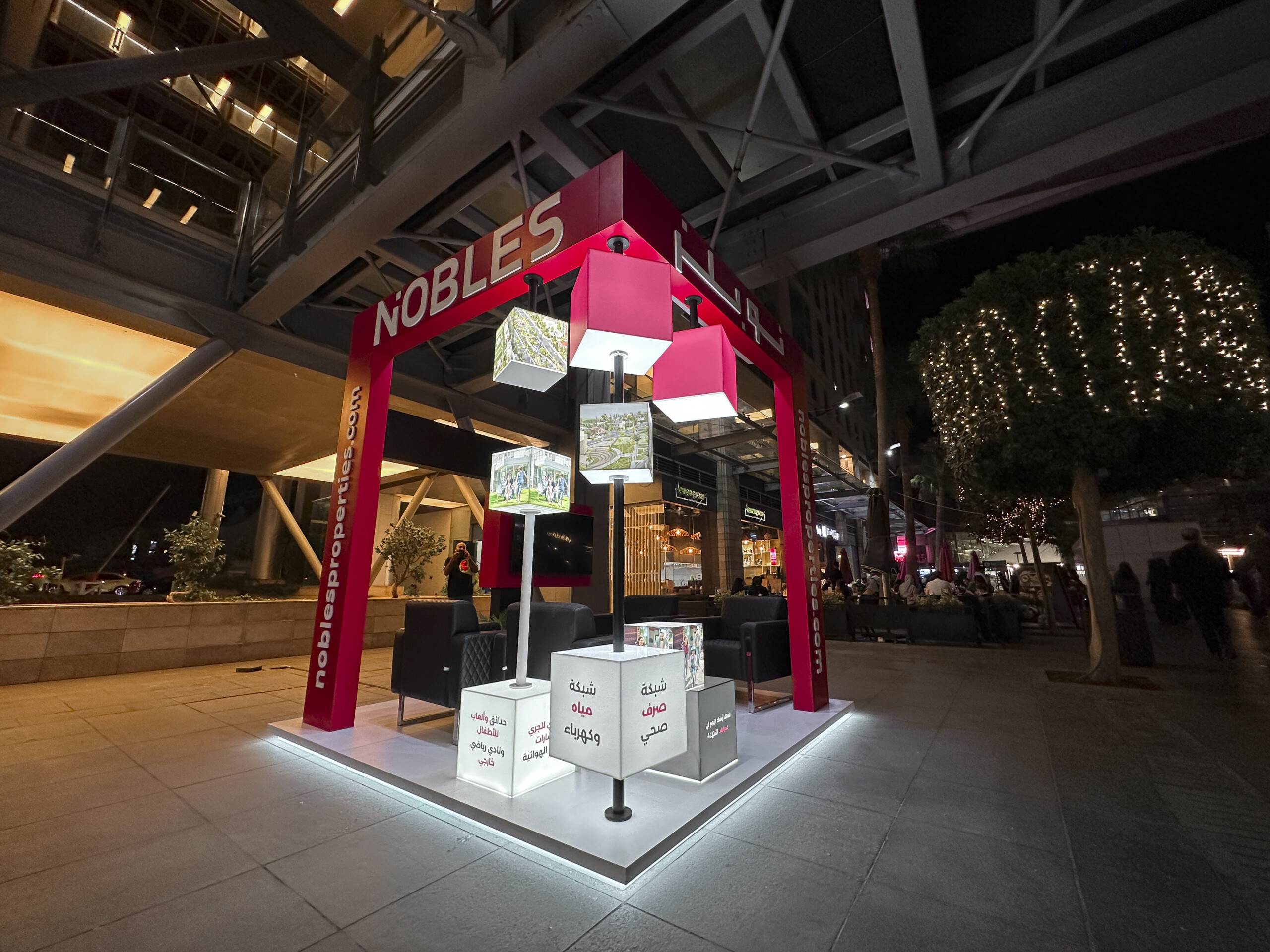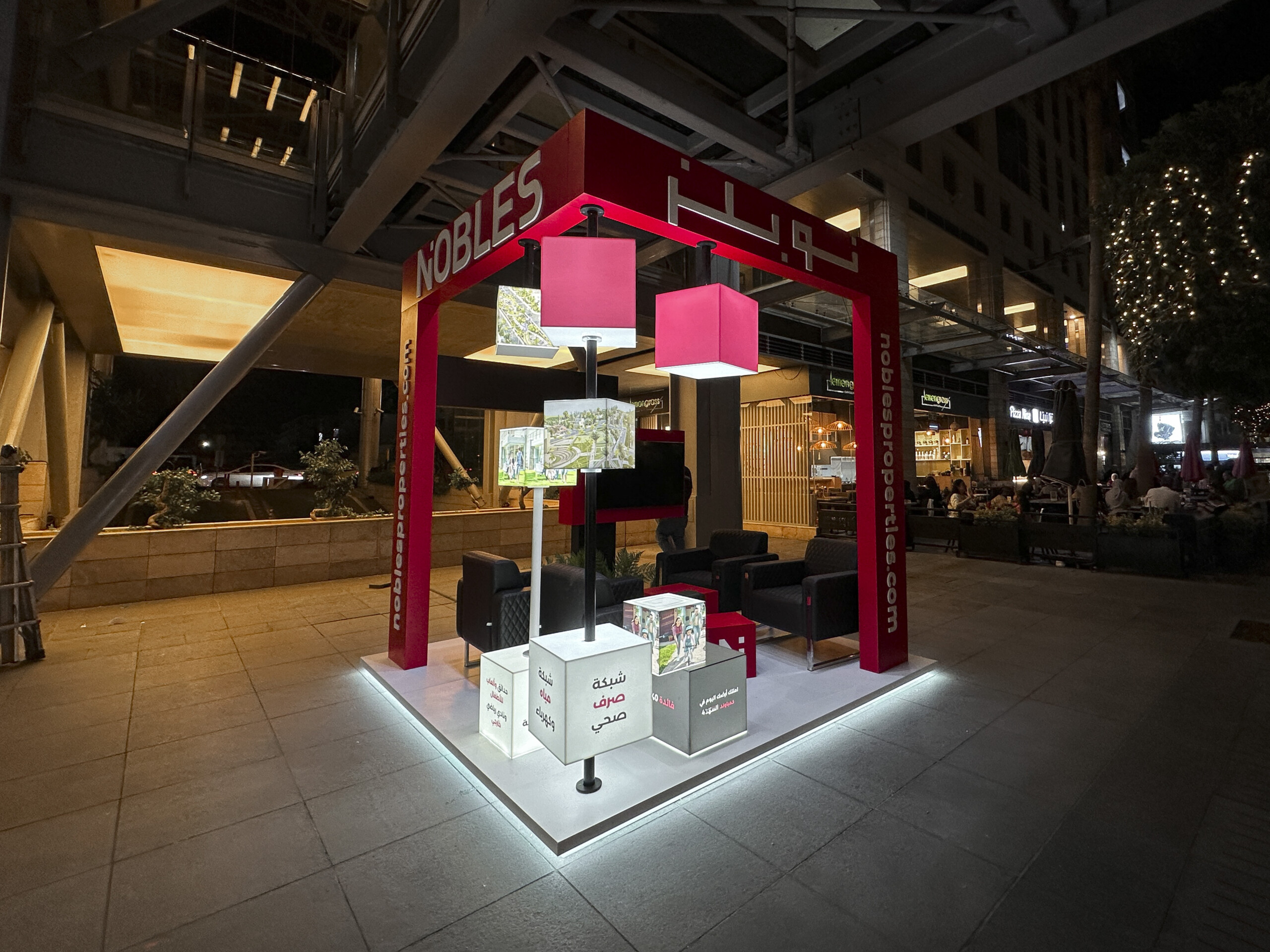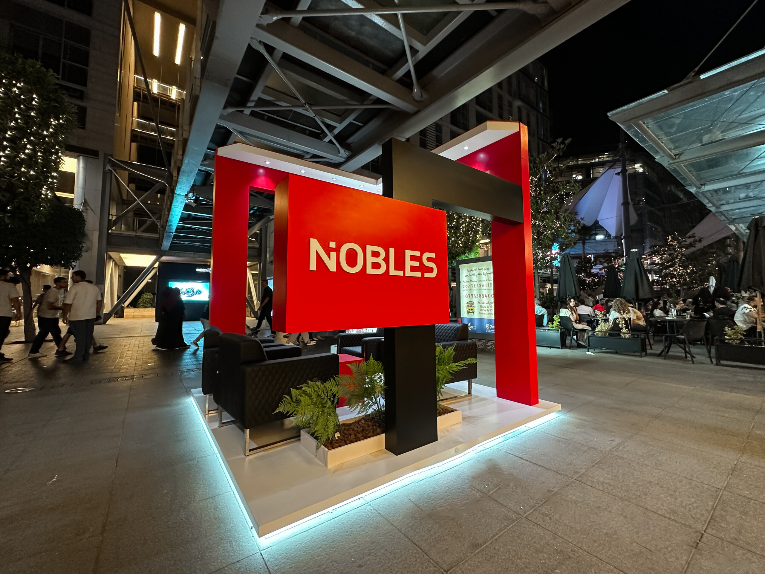 We executed the Nobles booth with an elegant design featuring a red and black color scheme, giving it a modern and attractive appeal. The booth incorporated light boxes to highlight the brand’s visual identity, along with artificial plants that added a natural and lively touch, creating a well-rounded experience that reflects the brand’s professionalism.