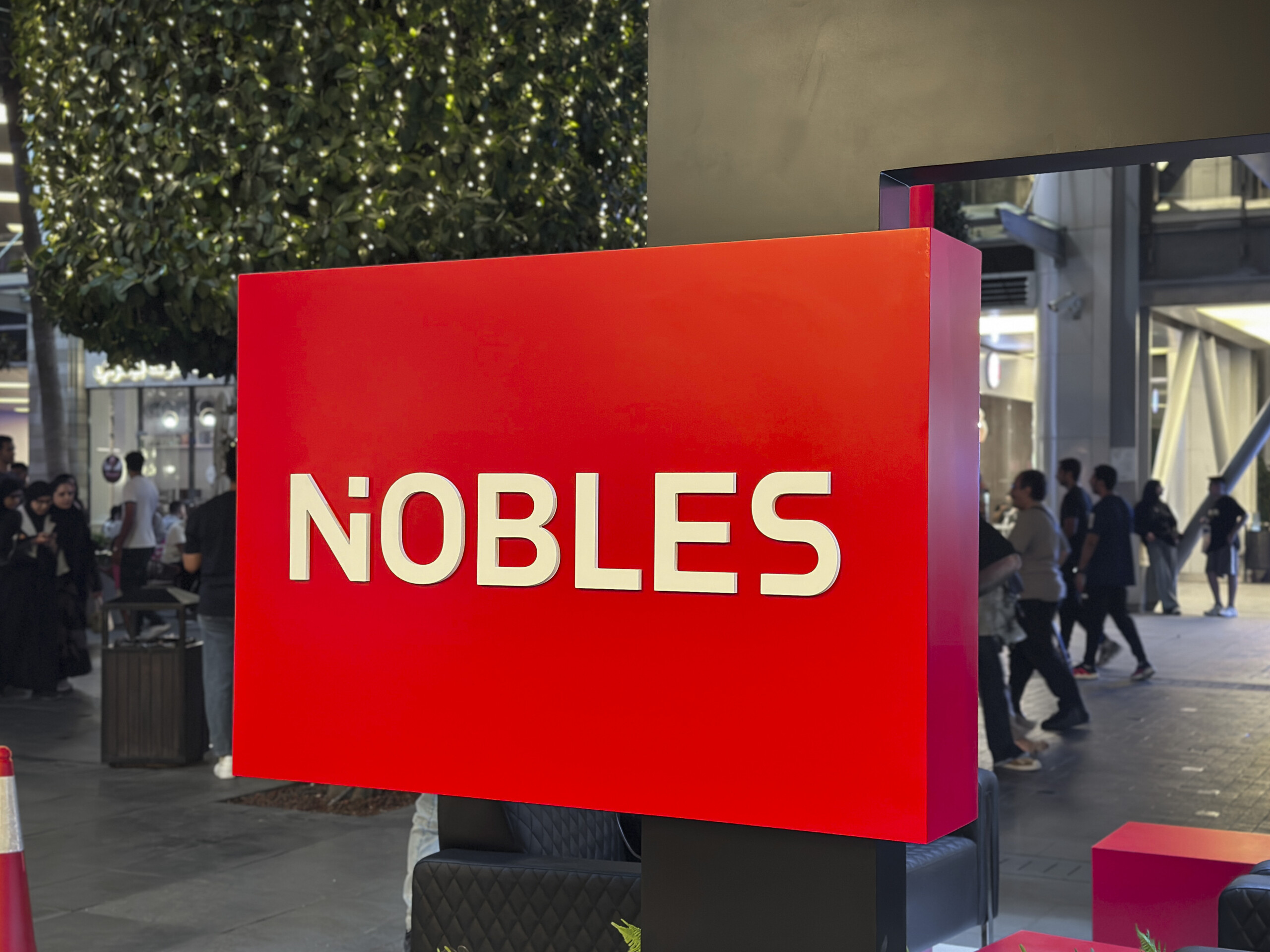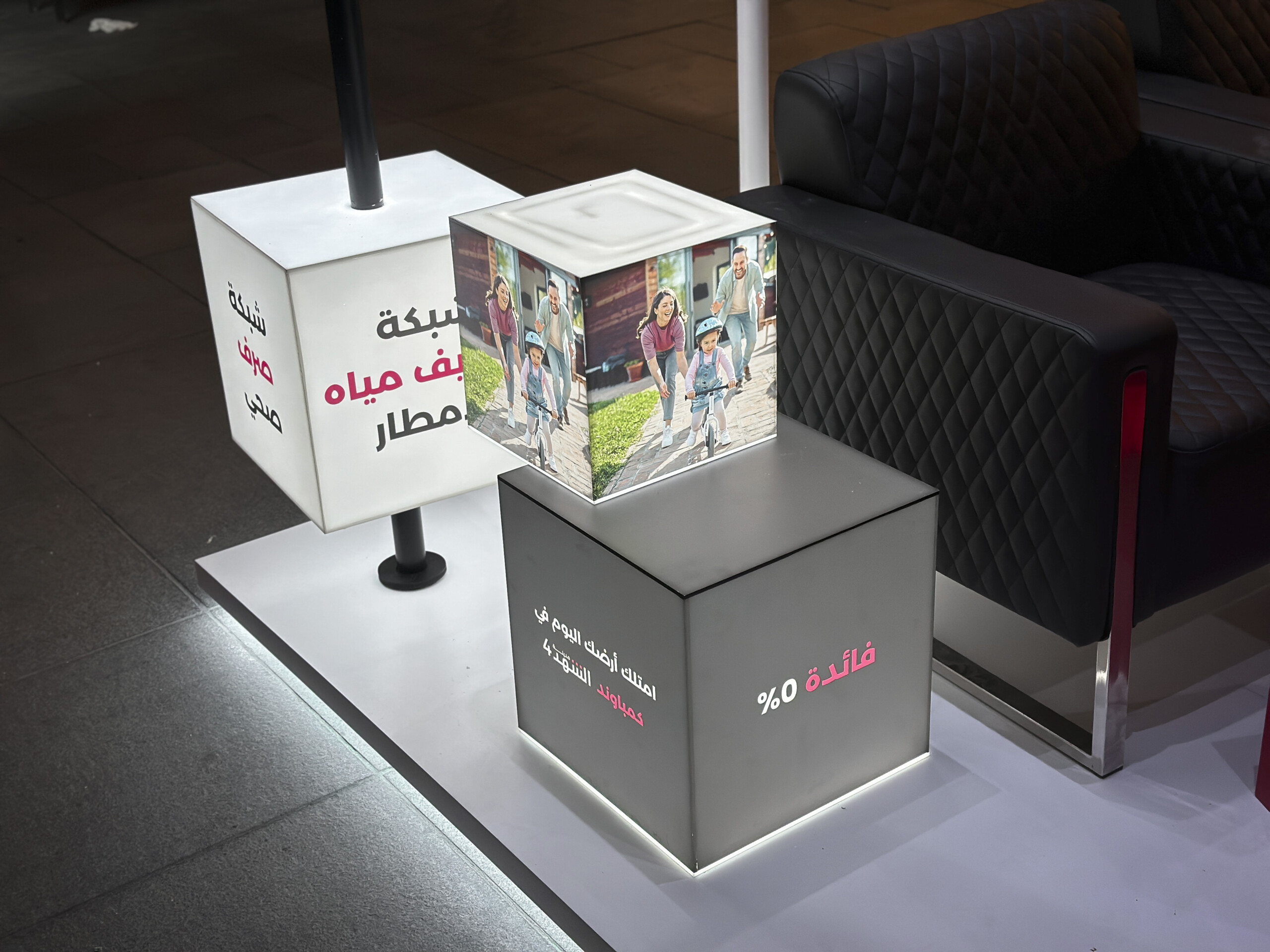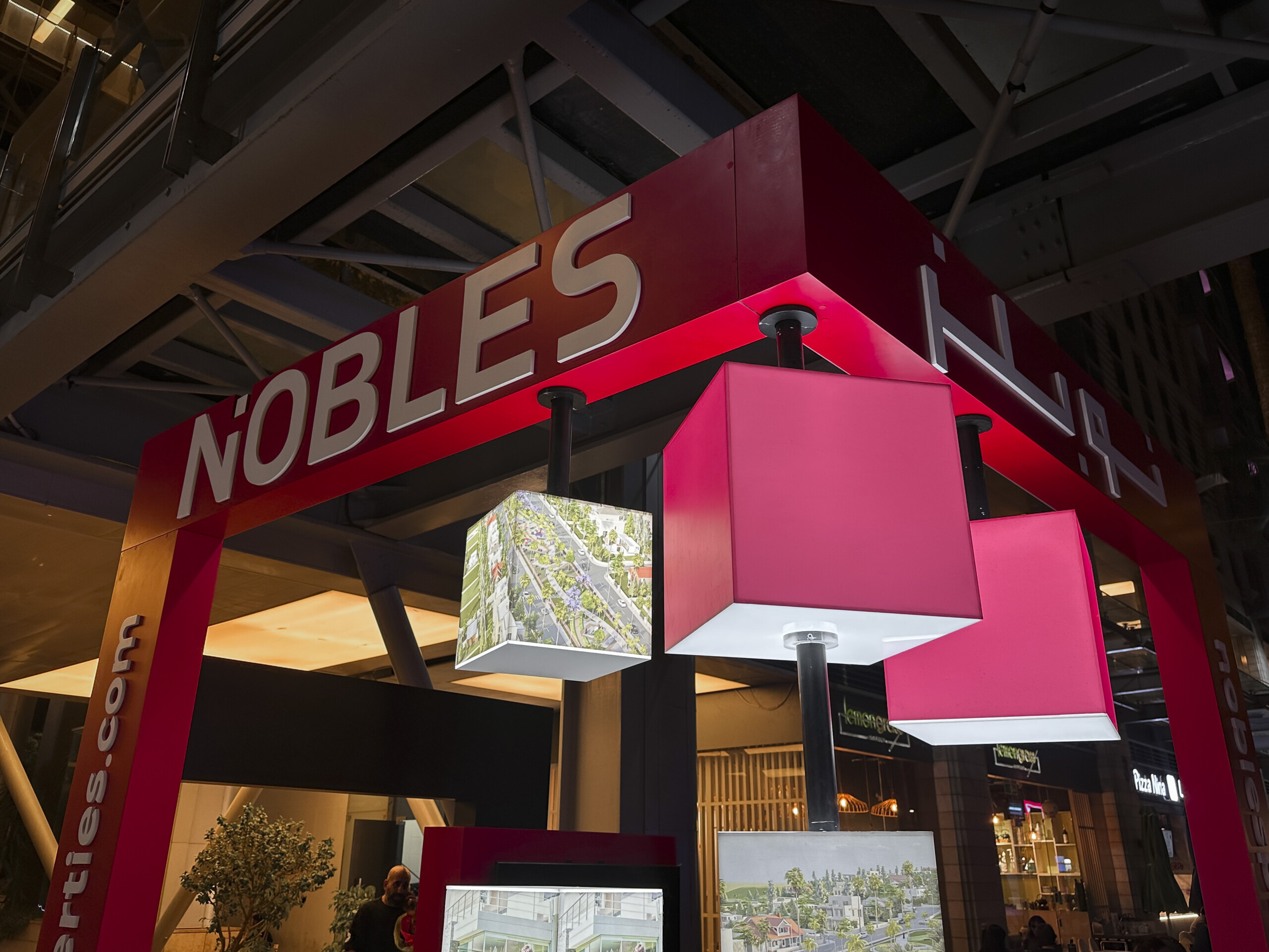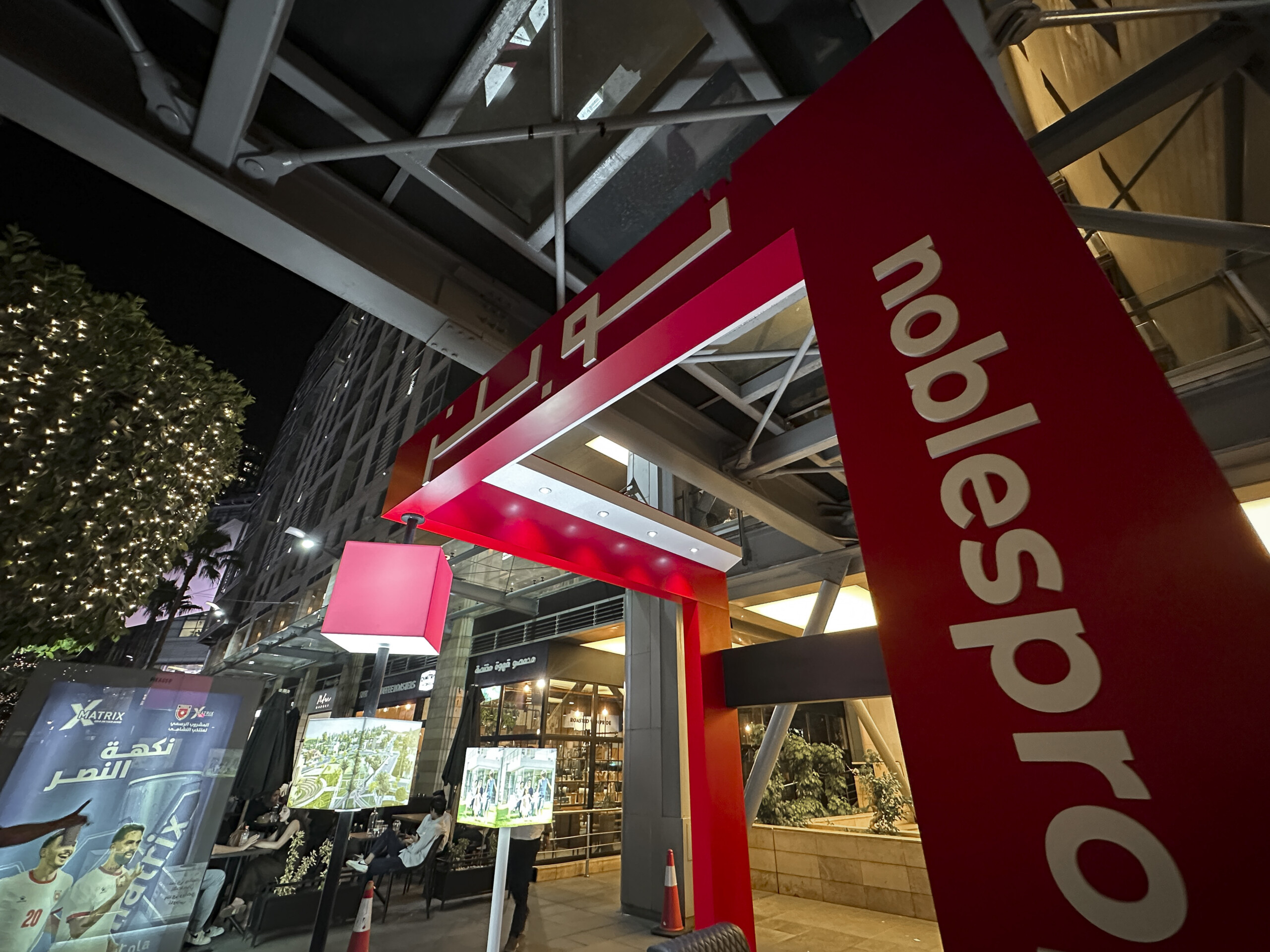 We executed the Nobles booth with an elegant design featuring a red and black color scheme, giving it a modern and attractive appeal. The booth incorporated light boxes to highlight the brand’s visual identity, along with artificial plants that added a natural and lively touch, creating a well-rounded experience that reflects the brand’s professionalism.